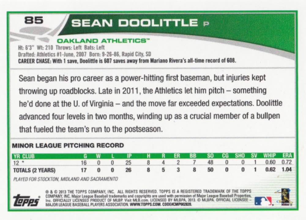 I can't possibly write a post in five minutes or less (except maybe this one) but I admire your attempt. That Doolittle card is awesome. I've had my eye on emerald parallel A's but haven't managed to get one yet. Also, this is the first I'm hearing about Jim Taylor's passing. R.I.P to a Packer legend. :(